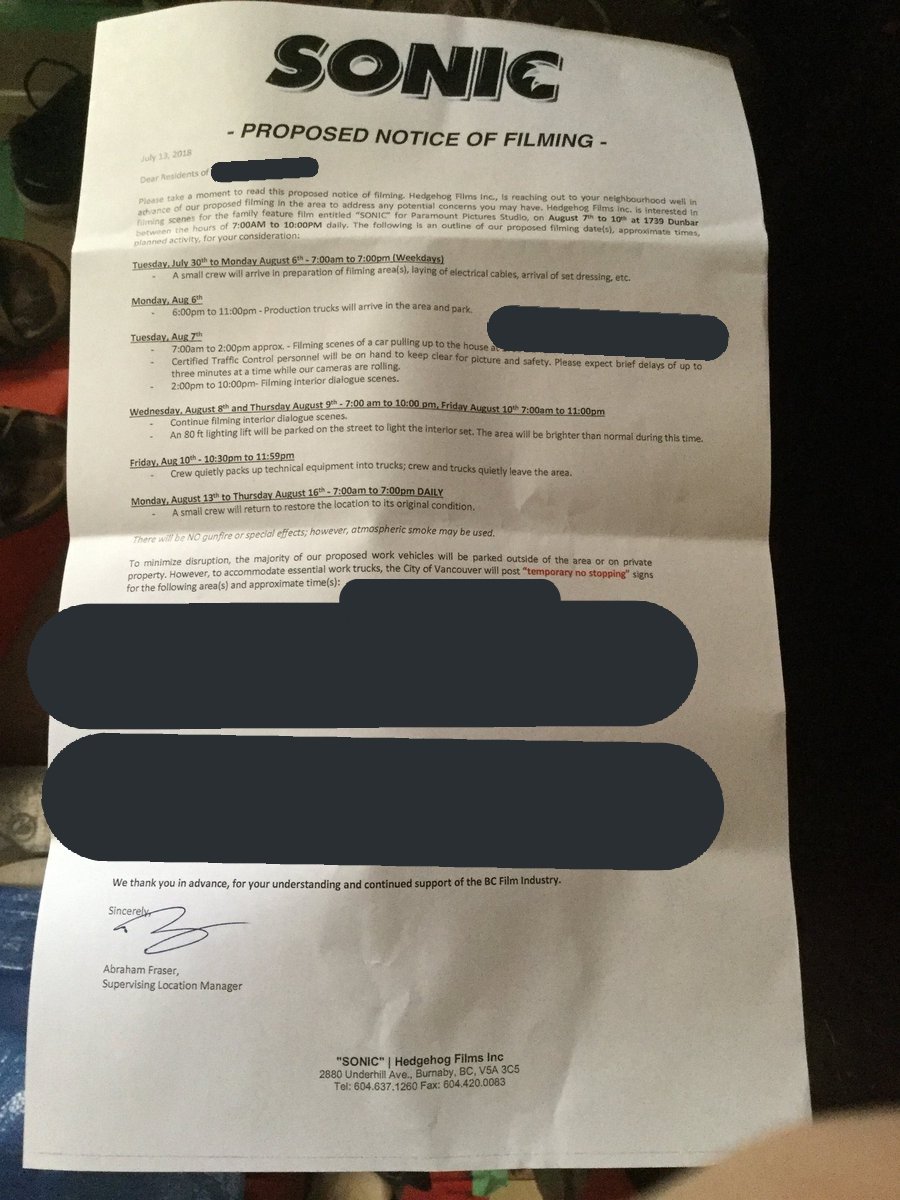 Tudo começou com o usuário do Twitter KyroDRX disse que seu amigo recebeu uma carta avisando que filmagens ocorreriam nas proximidades de onde ele morava. Tal carta tem um logo e o nome “Hedgehog Films Inc.” como uma empresa produtora do filme. É uma prática normal as empresas usarem nomes separados para isso, é uma manobra legal.