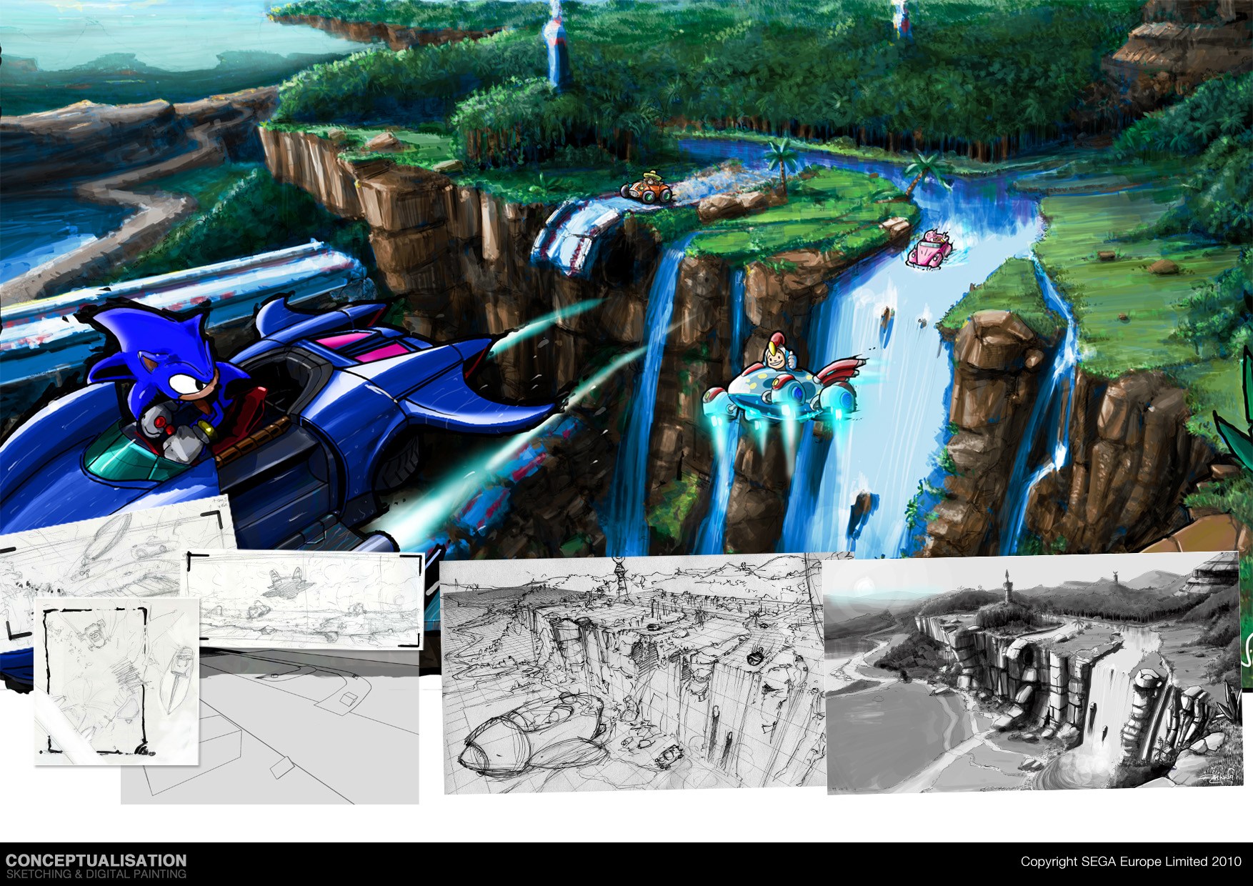 Porém, o mais interessante parece ser o All Stars Brawl, onde o Super Sonic foi usado nas concept arts para mostrar partes do jogo. Infelizmente a imagem revelada não mostra toda a concept art. Confiram as imagens: