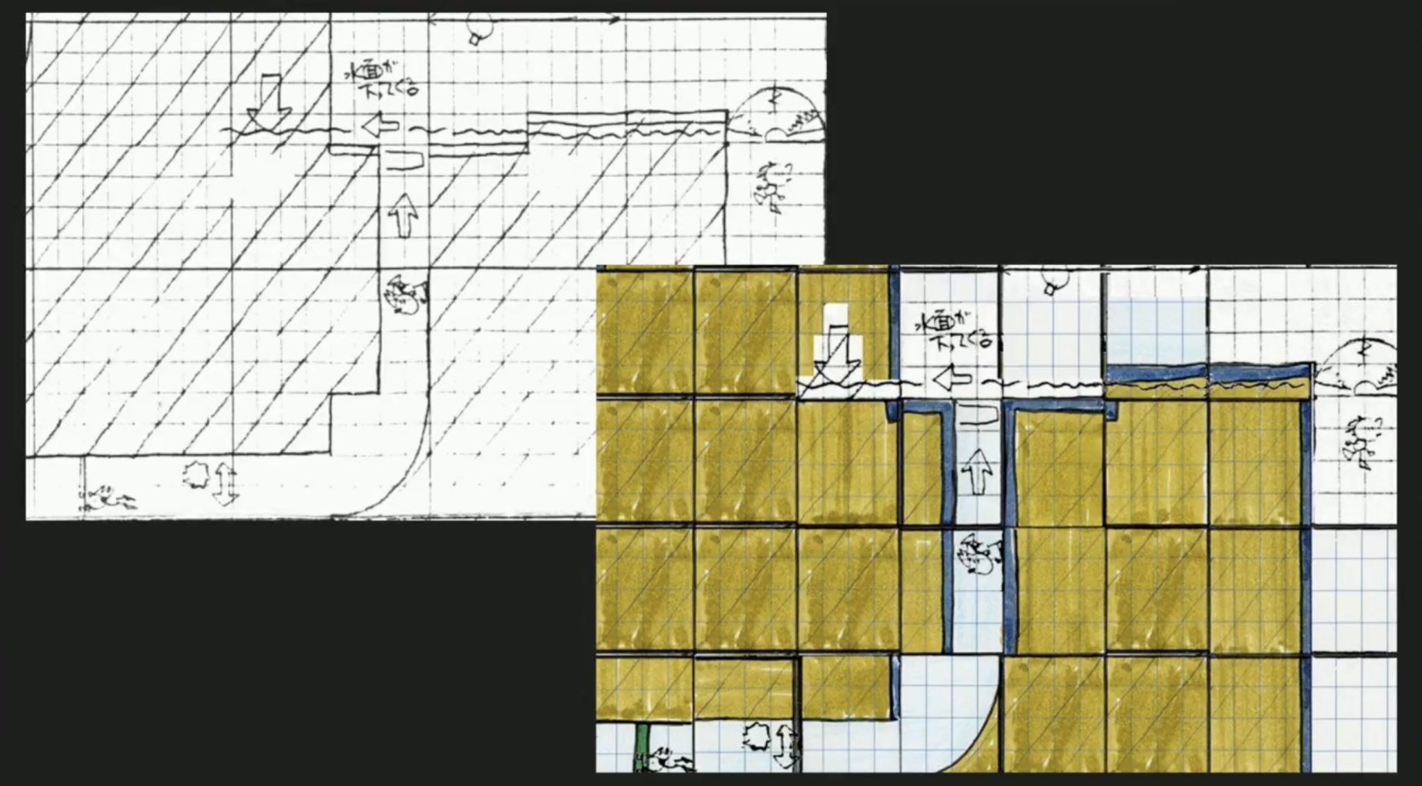 Elas seriam do ato 3 e teria água. É possível ver nas imagens escaneadas que seria possível interagir com a água, além de outros elementos presentes. Sem dúvidas tudo isso serviu de inspiração para a Chemical Plant.