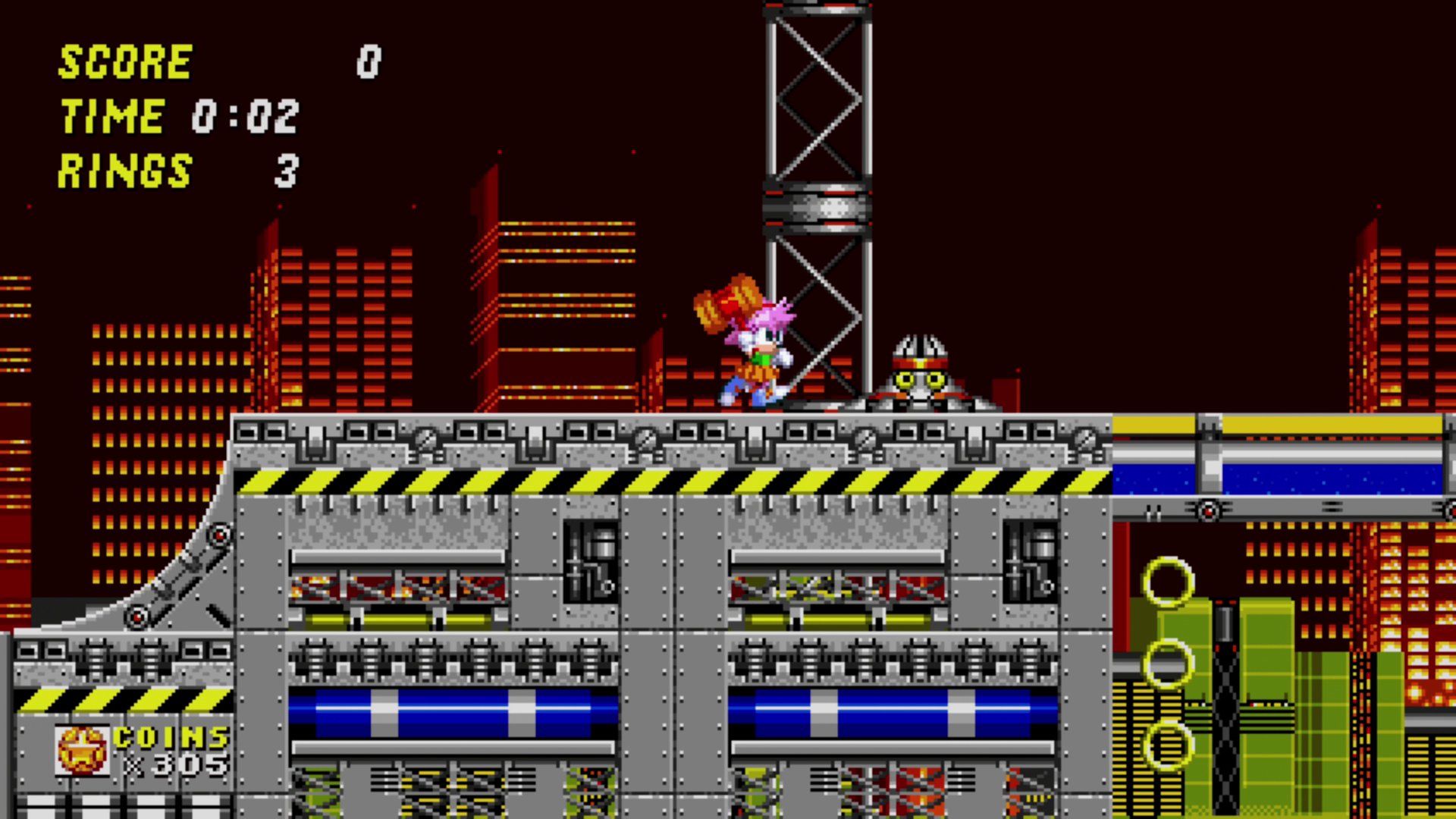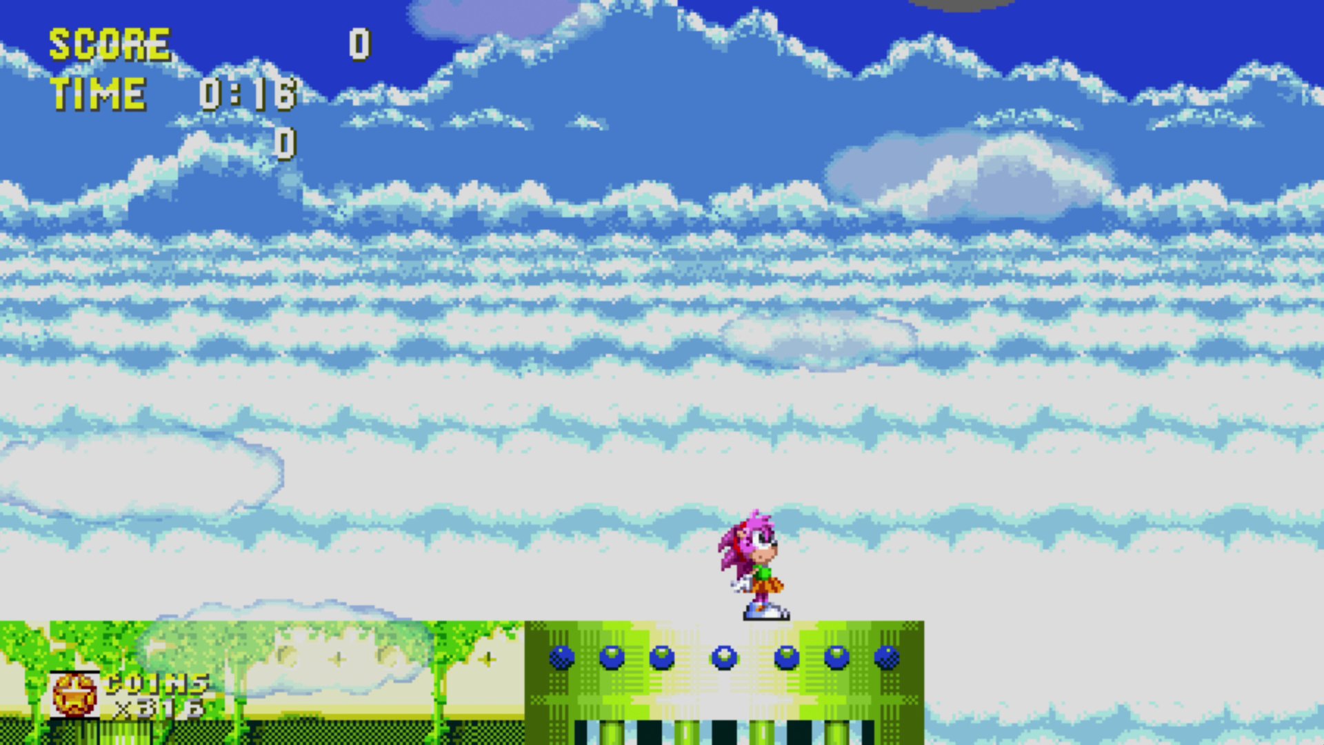 Ficamos empolgados quando ouvimos que a SEGA queria a Amy como personagem jogável, e não pudemos resistir a oportunidade de colocá-la em foco! Novos personagens jogáveis requerem novas sprites, e o @AStartShow foi o escolhido para tal tarefa, enquanto que @DashPadSPD, cuidou do gerenciamento de dados.