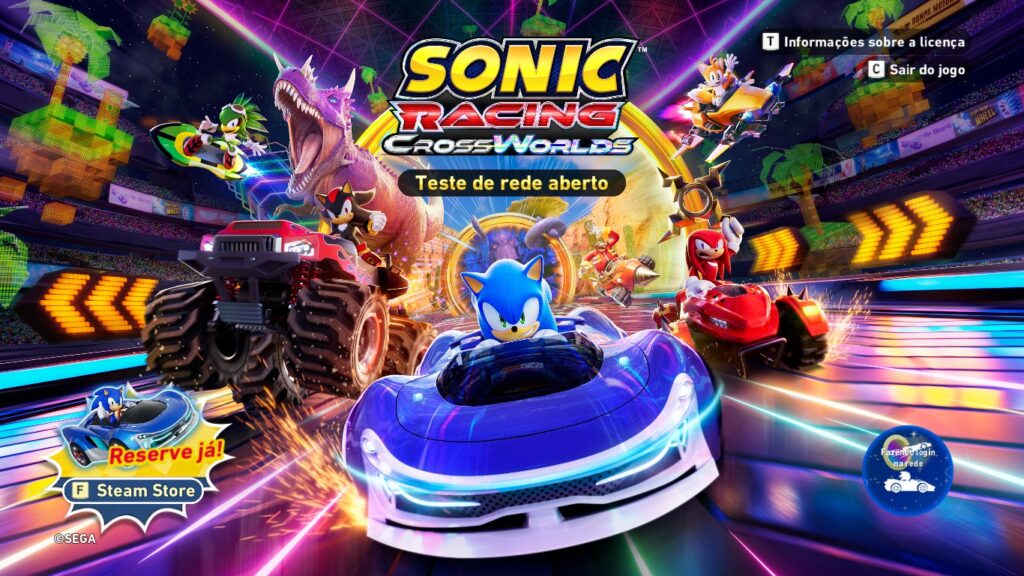 Para começar, o teste aberto do Sonic Racing: CrossWorlds já está disponível para baixar em qualquer uma das plataformas em que o jogo estará disponível (PS5, Xbox Series, Switch 2 e PC), basta ir na página do jogo nas lojas digitais e baixar o Open Test. Qualquer um pode participar, é de graça e vai dos dias 29 de Agosto até o dia 1 de Setembro.