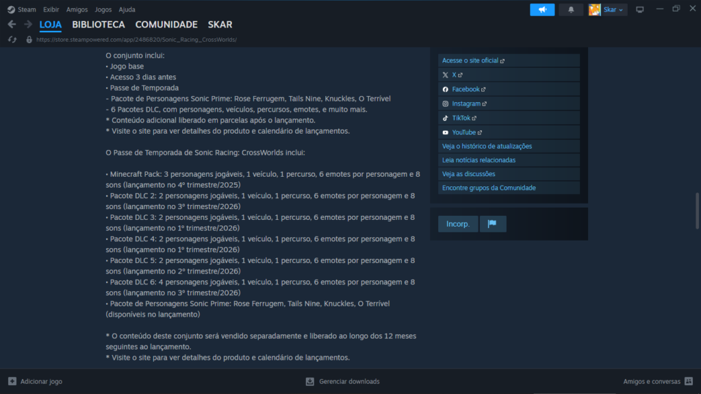 E, claro, tudo isso não poderia passar sem fazer uma propaganda do mesmo, então podemos ver mais do Sonic Racing: CrossWorlds neste vídeo, desde pistas novas a detalhes de customização, incluindo as pranchas, confiram: