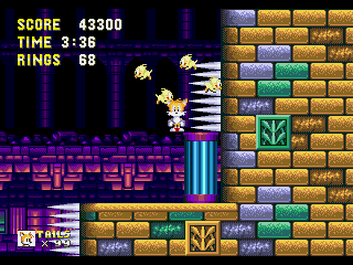 Aqui estão os bugs que ocorrem com o Tails em Sonic 3 & Knuckles. Passe o mouse sobre as fotos para ver a legenda.