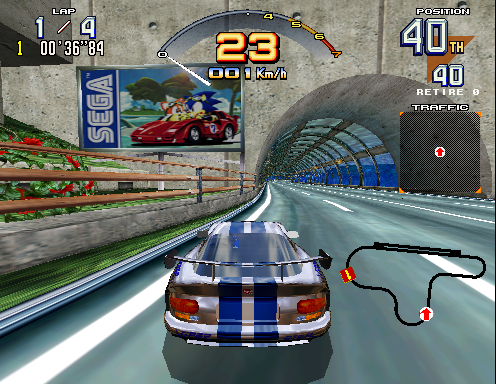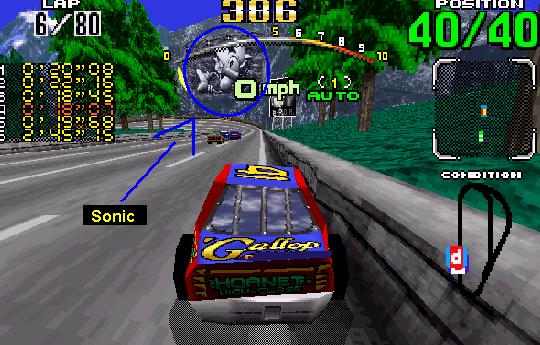 uma das pistas. O círculo em destaque mostra o ouriço. O Daytona Usa foi