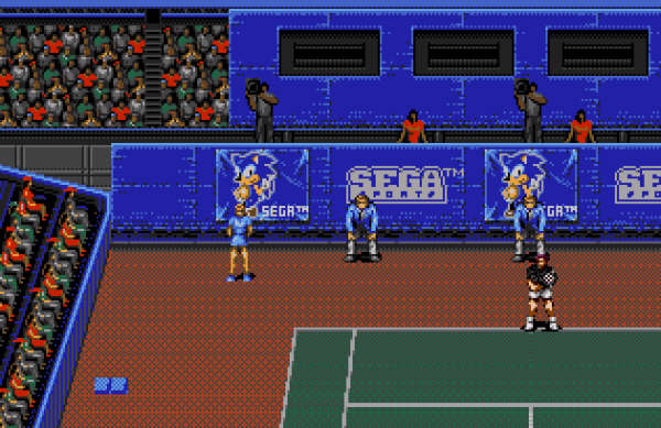 Mais um jogo de tênis onde o Sonic aparece, dessa vez como placa de anúncio.