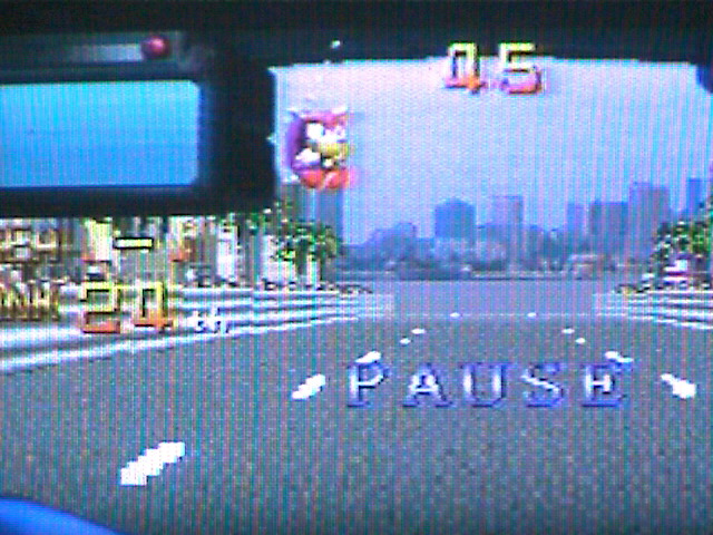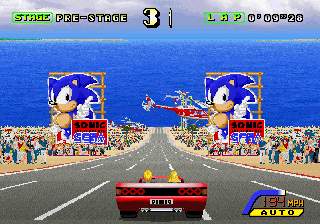 Jogo clássico de corrida da Sega estilo TopGear, em que o Sonic faz