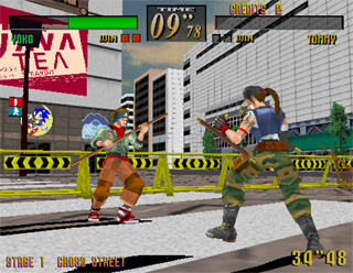 Japão. Um ótimo game, por sinal. Temos um cameo do Sonic, num cartaz em