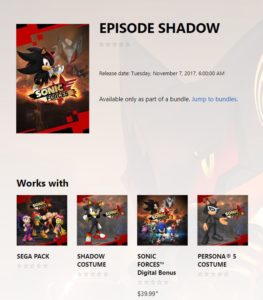 O site da Microsoft vazou um DLC GRATUITO que fará parte do pacote de pre-order do Sonic Forces: Episode Shadow. Que, ao que tudo indica, será um episódio a parte onde se joga com o Shadow e conta a história do Shadow e do Infinite.