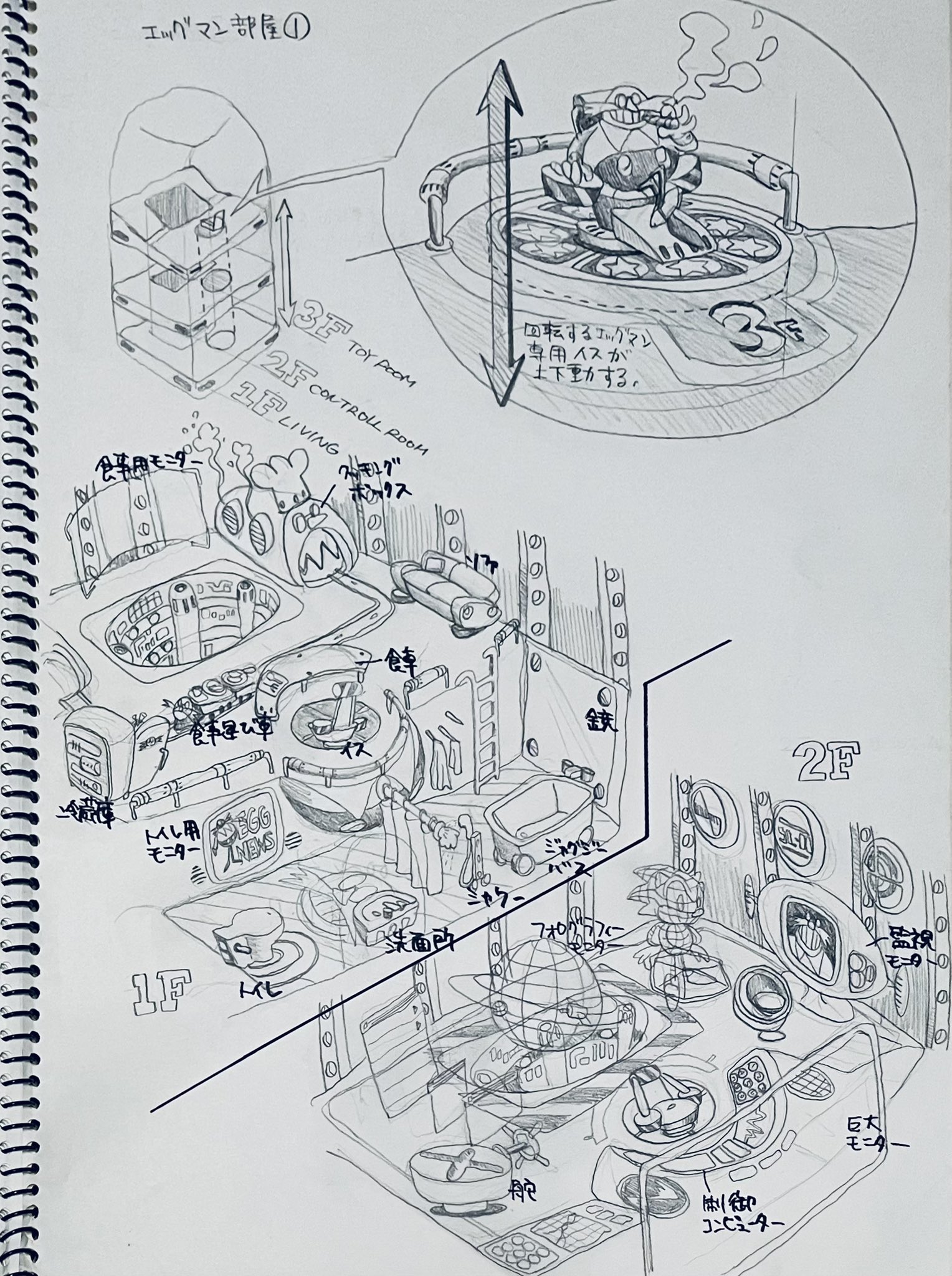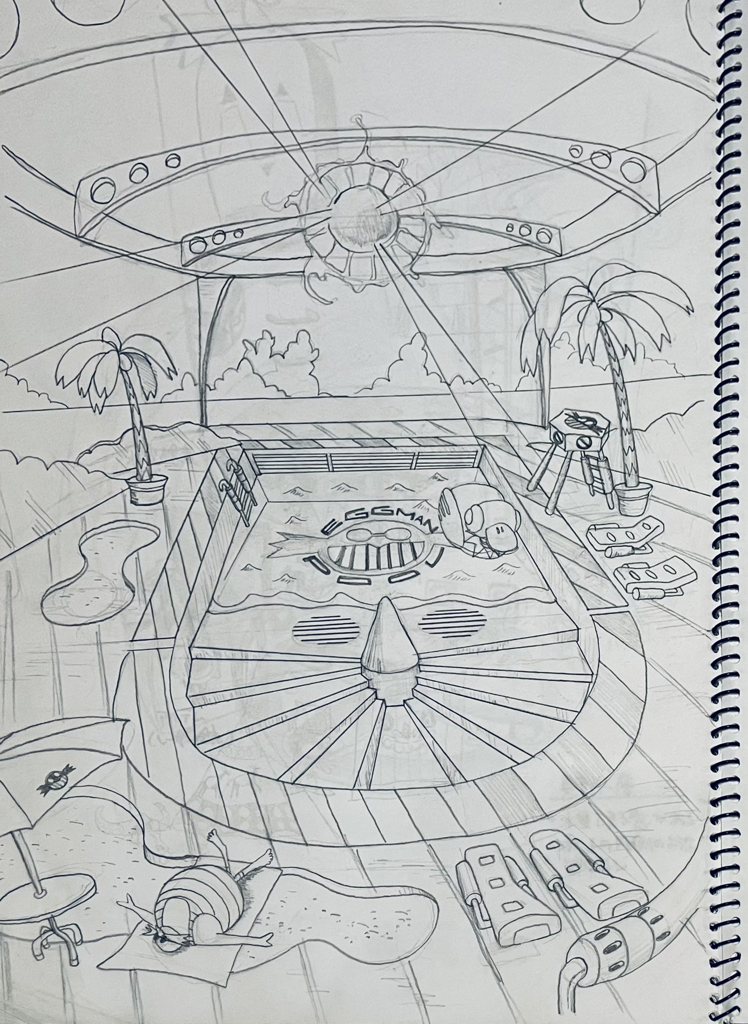 E para finalizar temos uma fase duvidosa, quarto do Dr. Eggman, outro quarto do Dr. Eggman e esboço da competição para criar o Sonic moderno junto com uma garota do Burning Rangers: