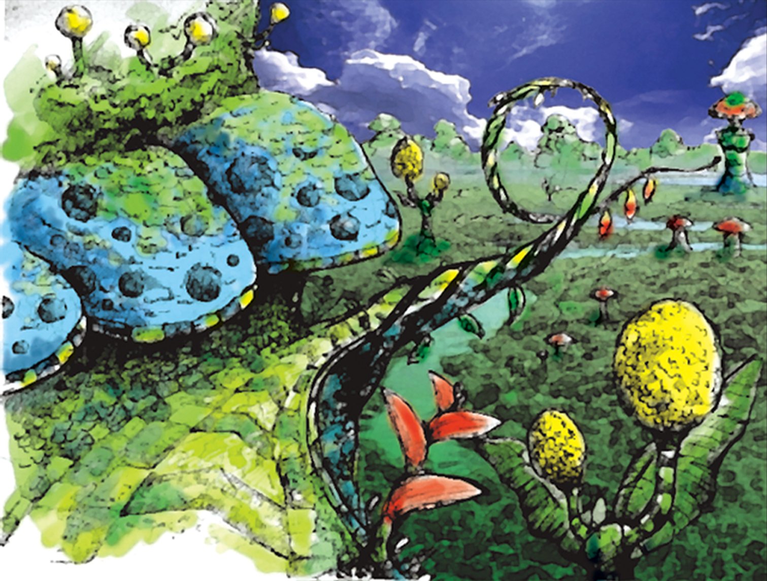 De acordo com o que ele se lembra, ele se baseou no design simplista de um Opa-Opa do Fantasy Zone para criar o design do Fang e que gostou do que fez com as presas.