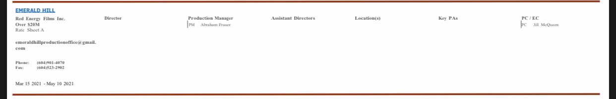 Tais informações vem de um documento preenchido na British Columbia Film Commission, Canadá: