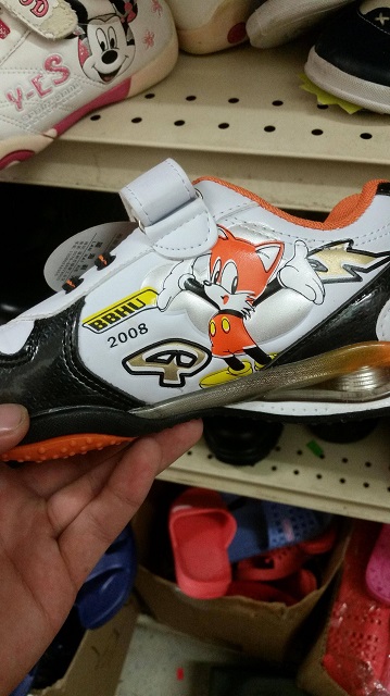 O pessoal gosta mesmo de misturar Mickey e o mundo Sonic. Esse outro foi um sapato vendido por aí que trazia um simpático mascote que era uma espécie de simbiose entre o Tails e o Mickey.