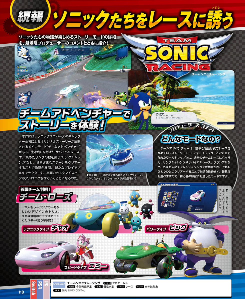 Revista Famitsu revela mais detalhes sobre o Team Sonic Racing