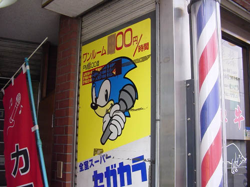 Um karaoke com o Sonic de propaganda no Japão.