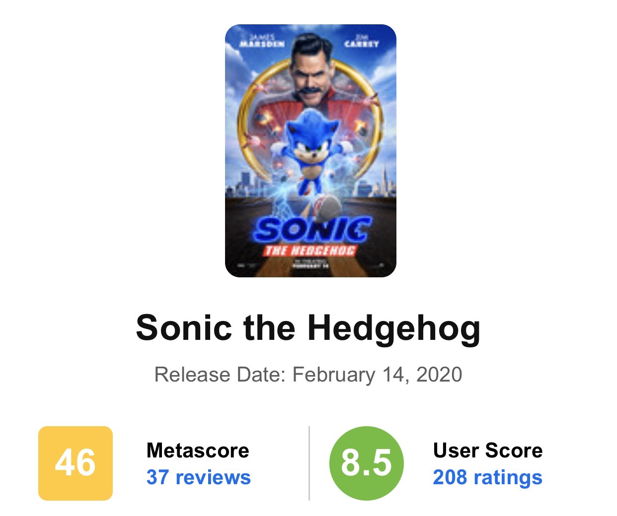 E aqui vai a primeira rodada de notas de reviews do filme do Sonic: